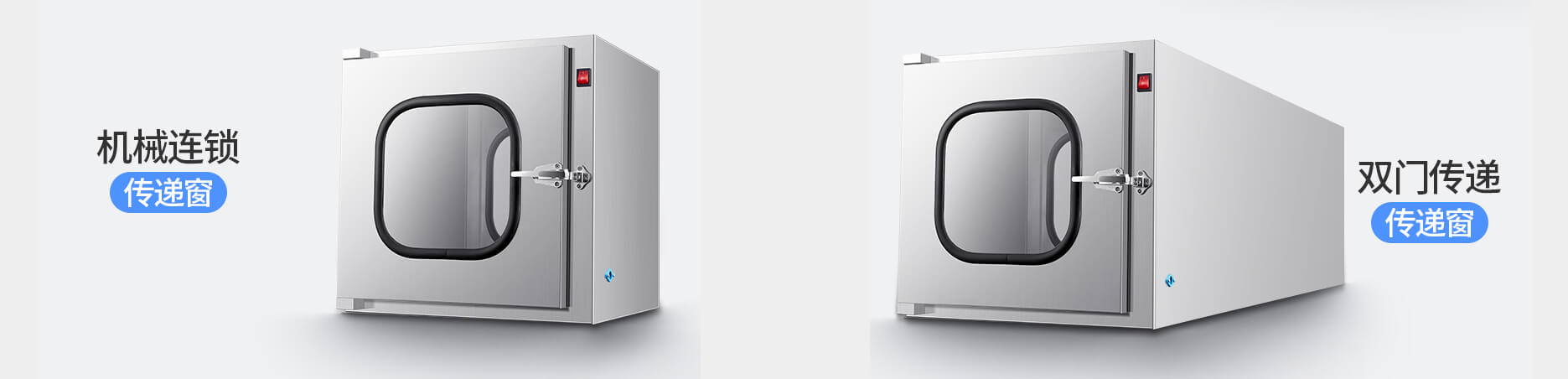 傳遞窗采用不銹鋼板制作,平整光潔。雙門互為連鎖,有效阻止交叉污染,設(shè)有電子或機械連鎖裝置,并配置紫外線殺菌燈。